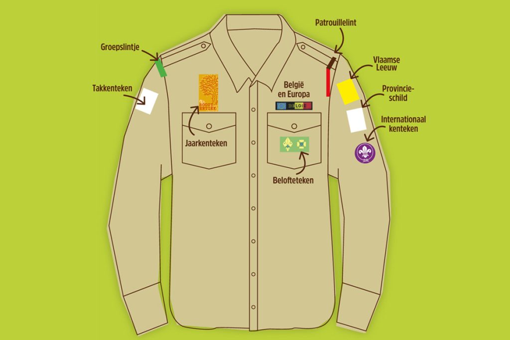 Een scoutshemd zonder kentekens? Dat kan natuurlijk niet! Maar de grote vraag is: waar moet elk kenteken?